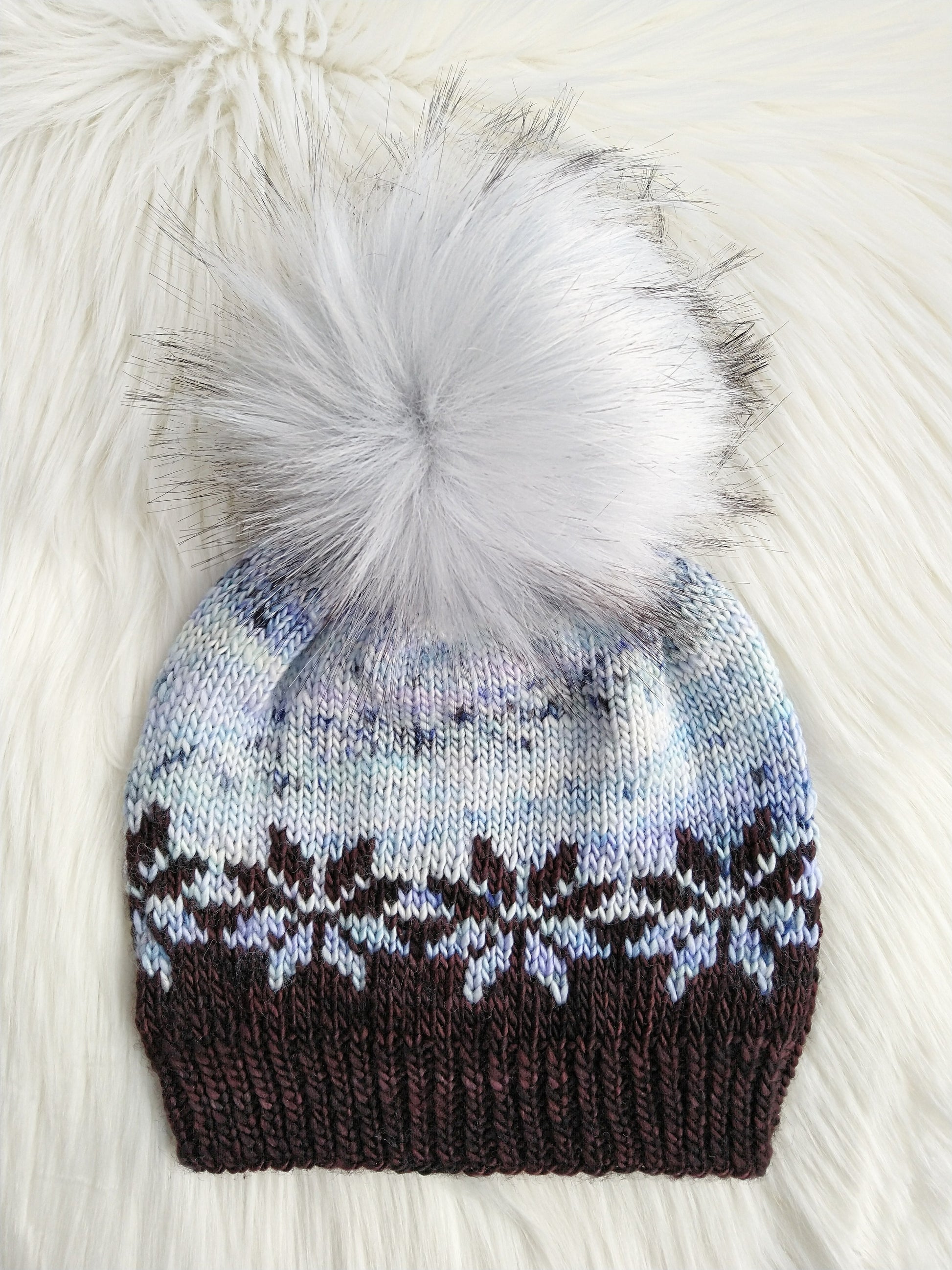 Glacius - a retro-vibe with a classic snowflake motif. Pattern instructions include suggestions for a headband. This one is also fairly easily to adjust for different head sizes given the motif and basic stockinette to the crown.