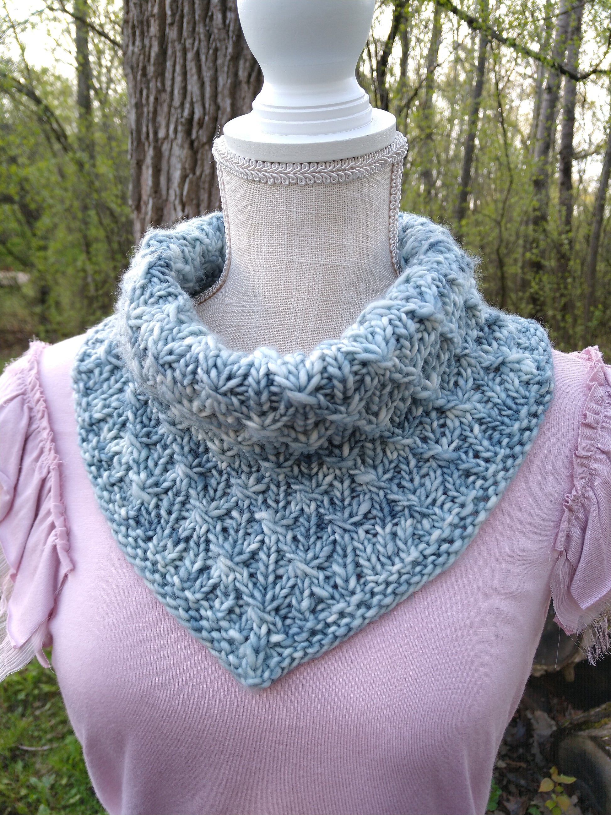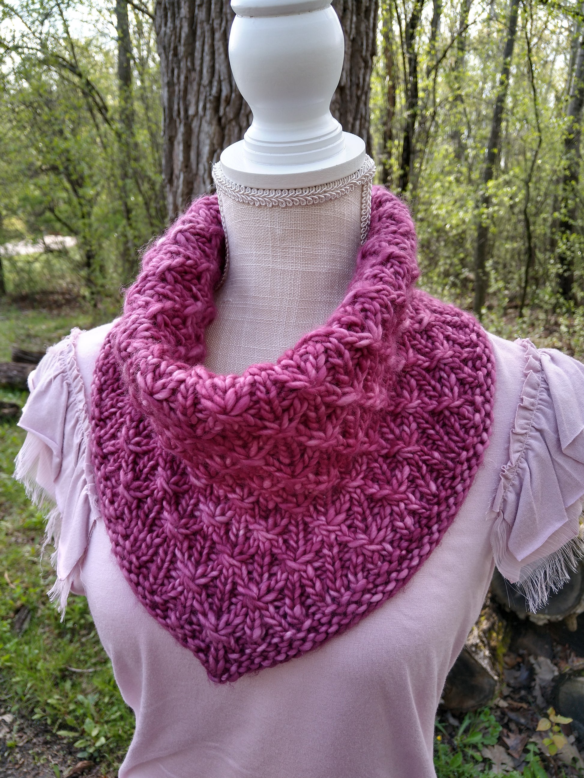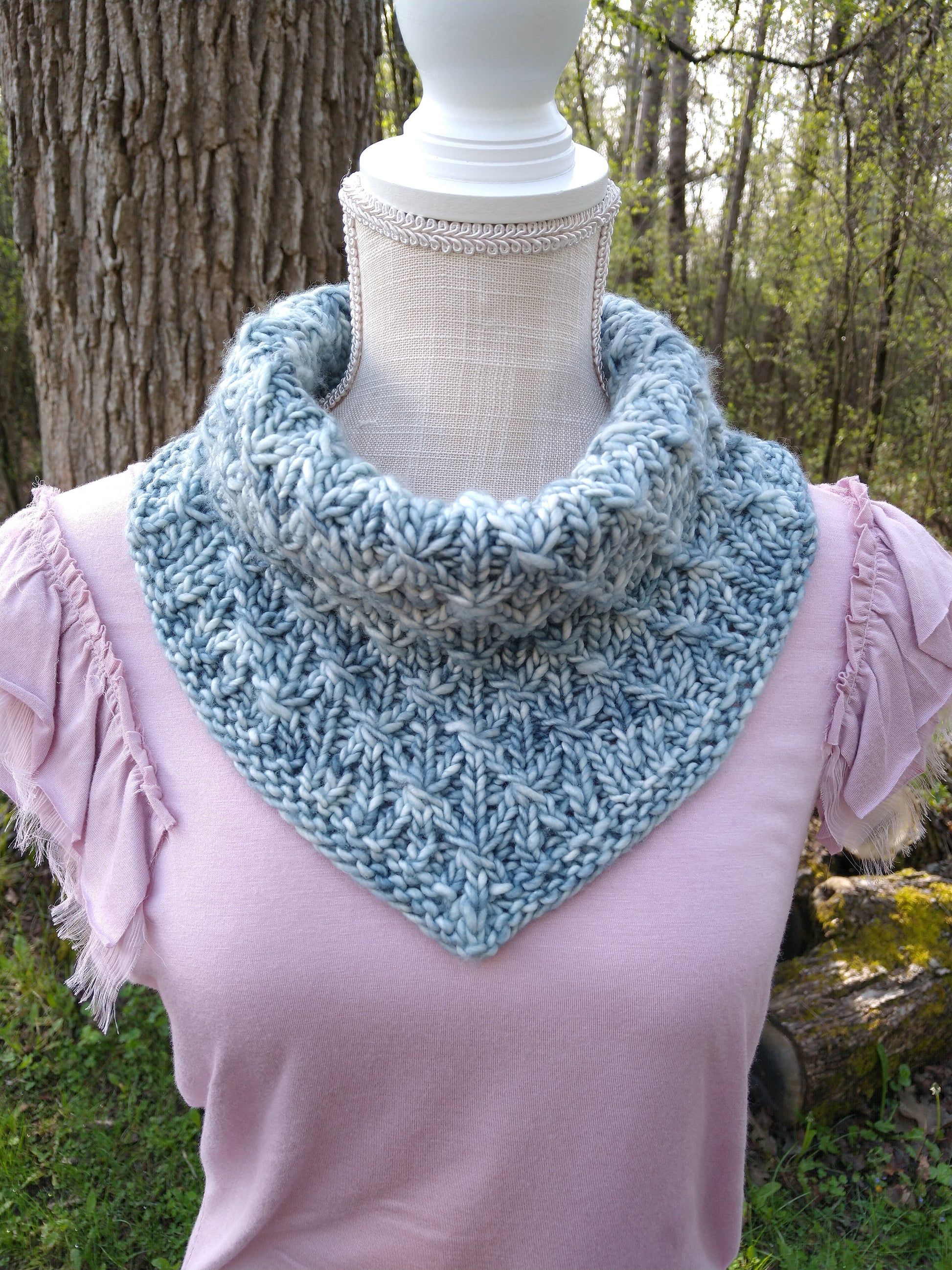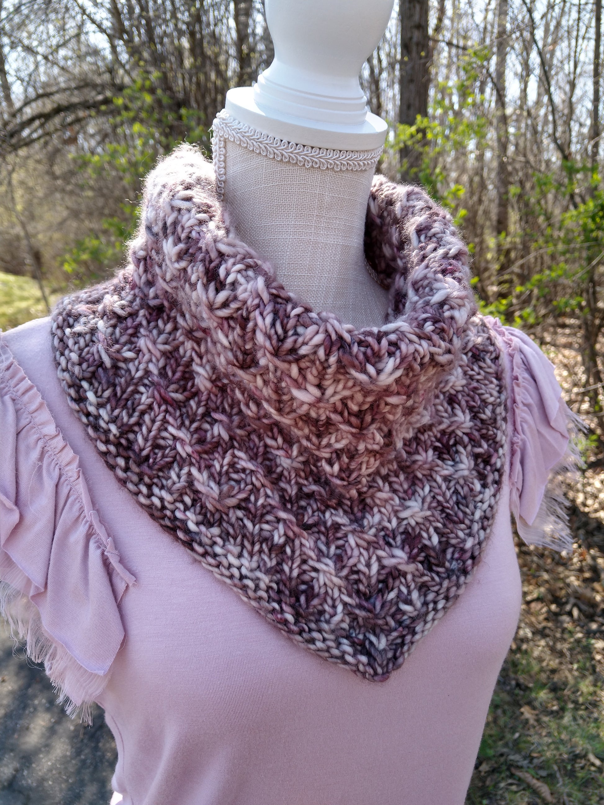 Bandana cowls are such a fun way to style a cowl without a lot of bulk. A seamless knit, this is knit in the round and shaped using German Short Rows (GSR) from the bottom up, adding texture and 2-stitch cables to test your skills. This design requires one to understand the fundamentals and principles behind GSR, making this an intermediate to advanced level knit.