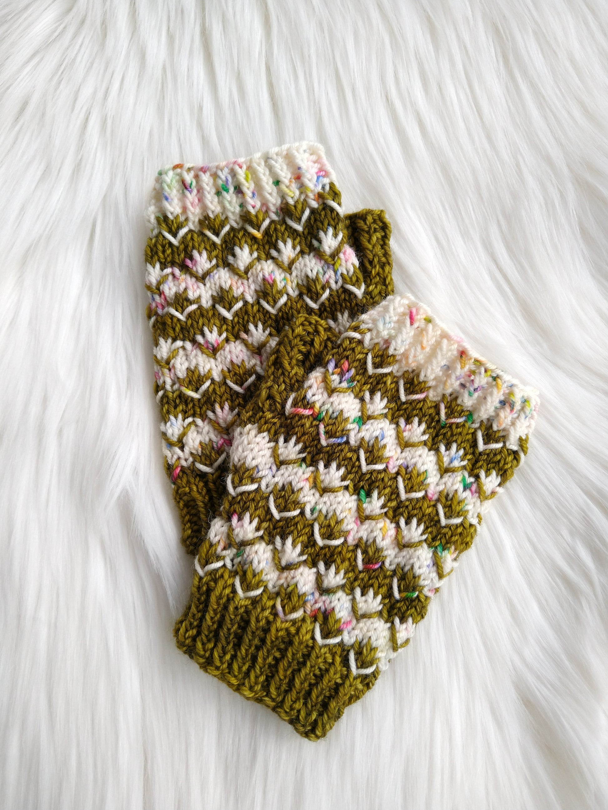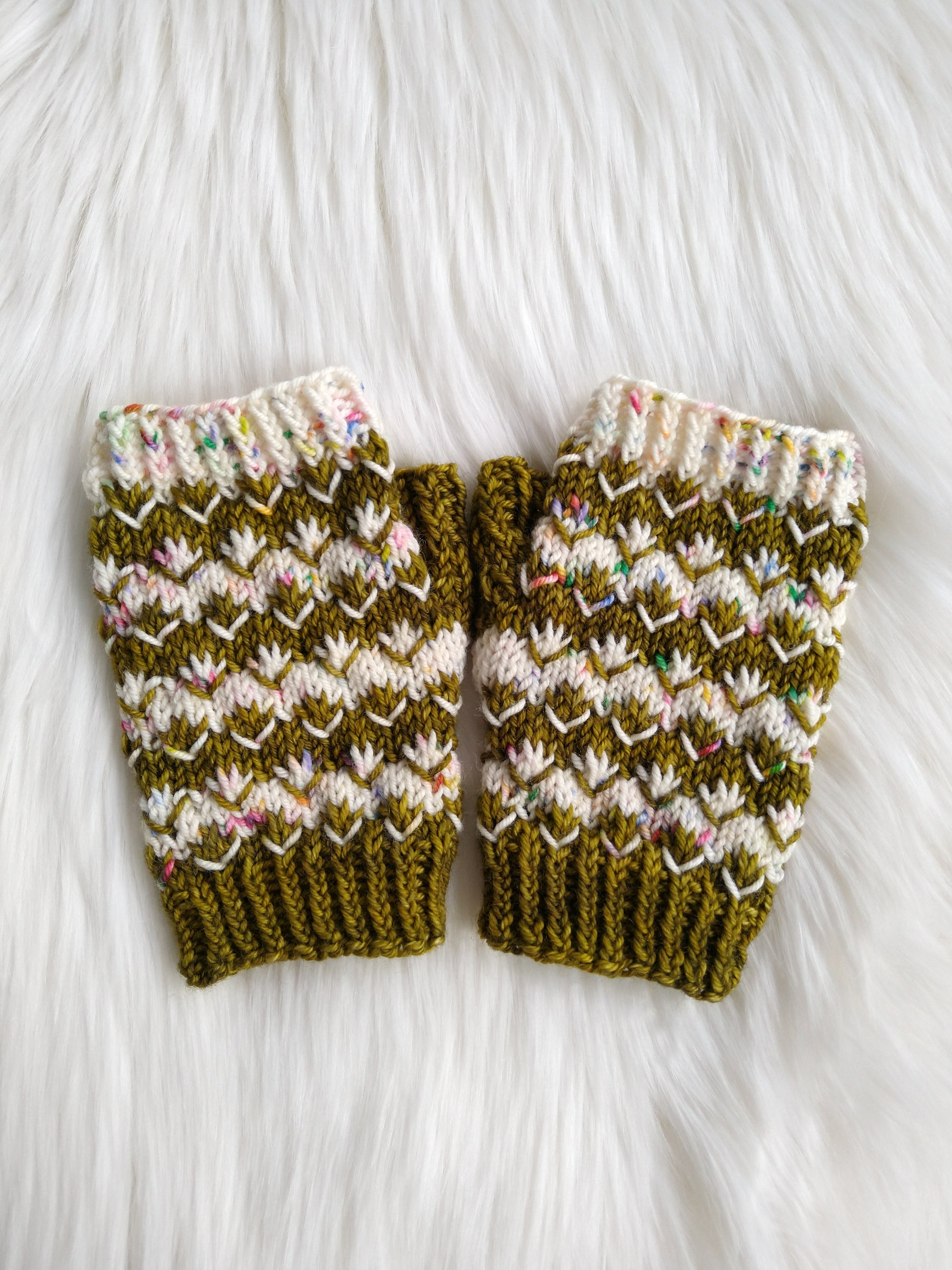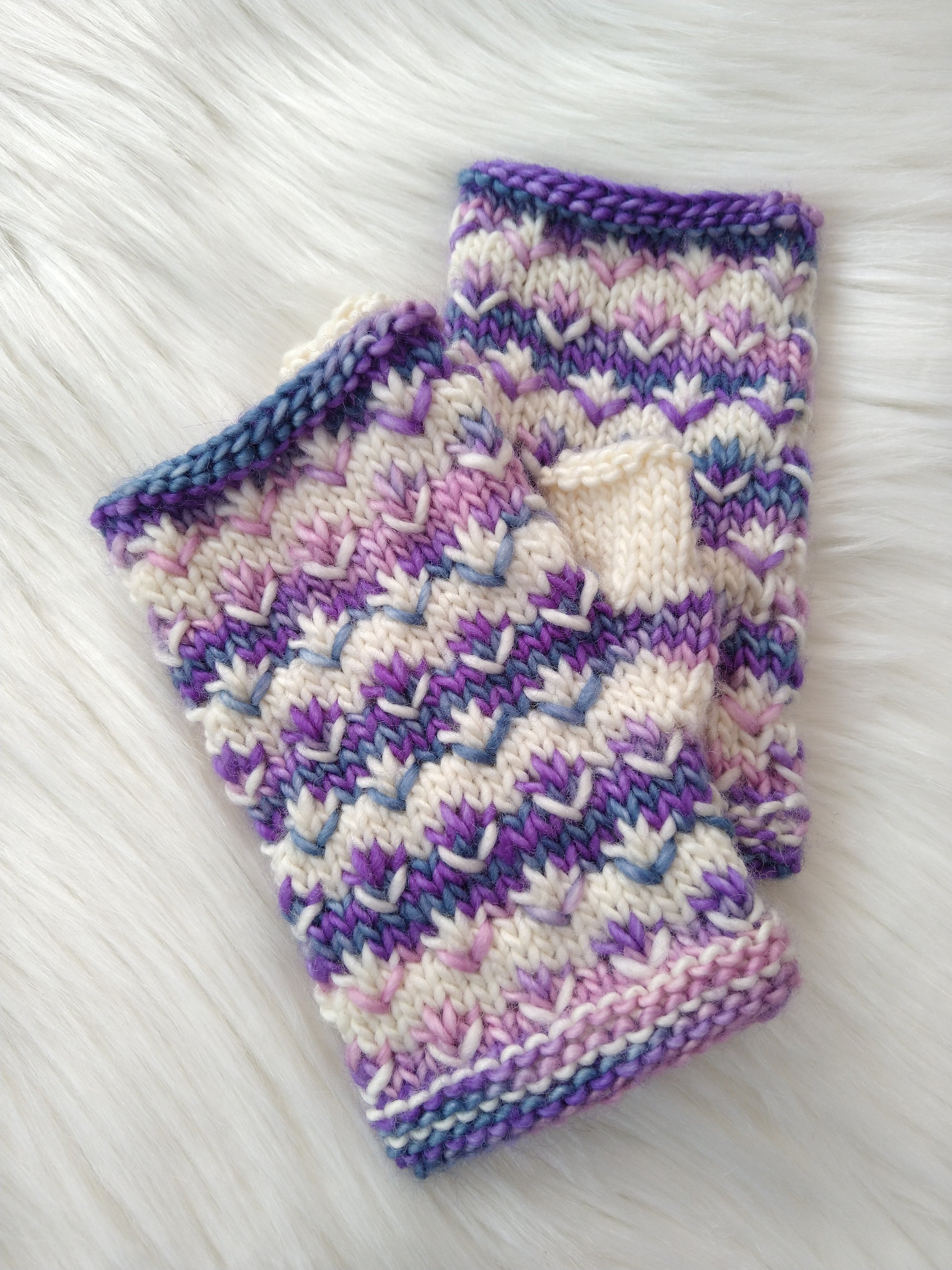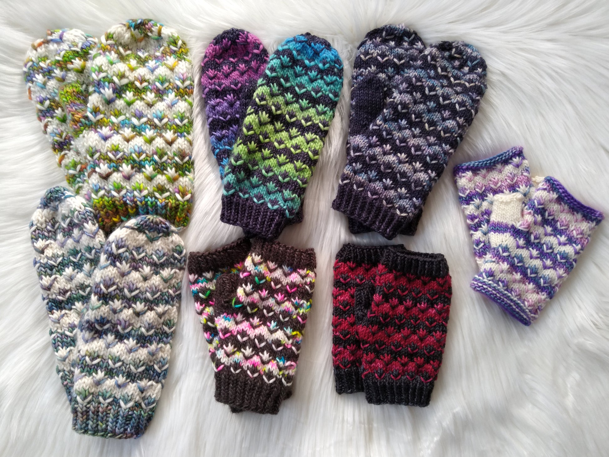 Using the same fun stitches as the Pomona Beanie, this is the light weight mitt/ mittens pattern to match! Pattern includes both fingerless and full coverage mitt options. It's much easier than it looks too, using just one color at a time!