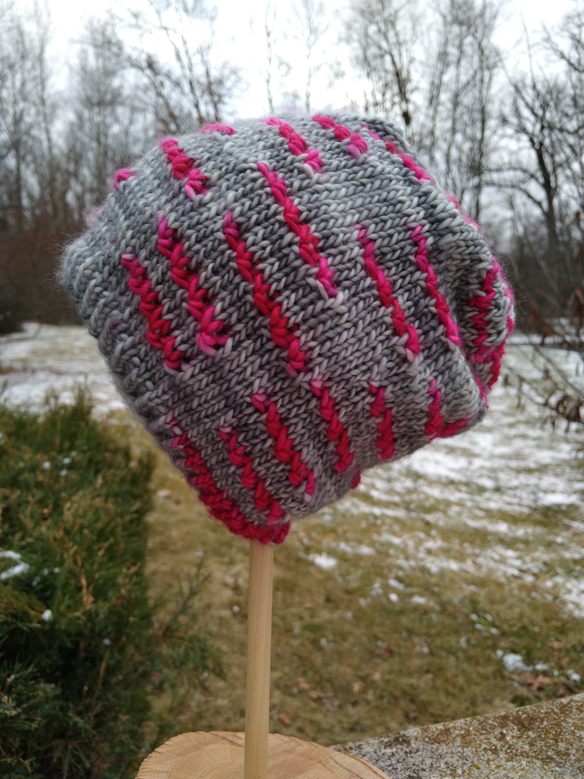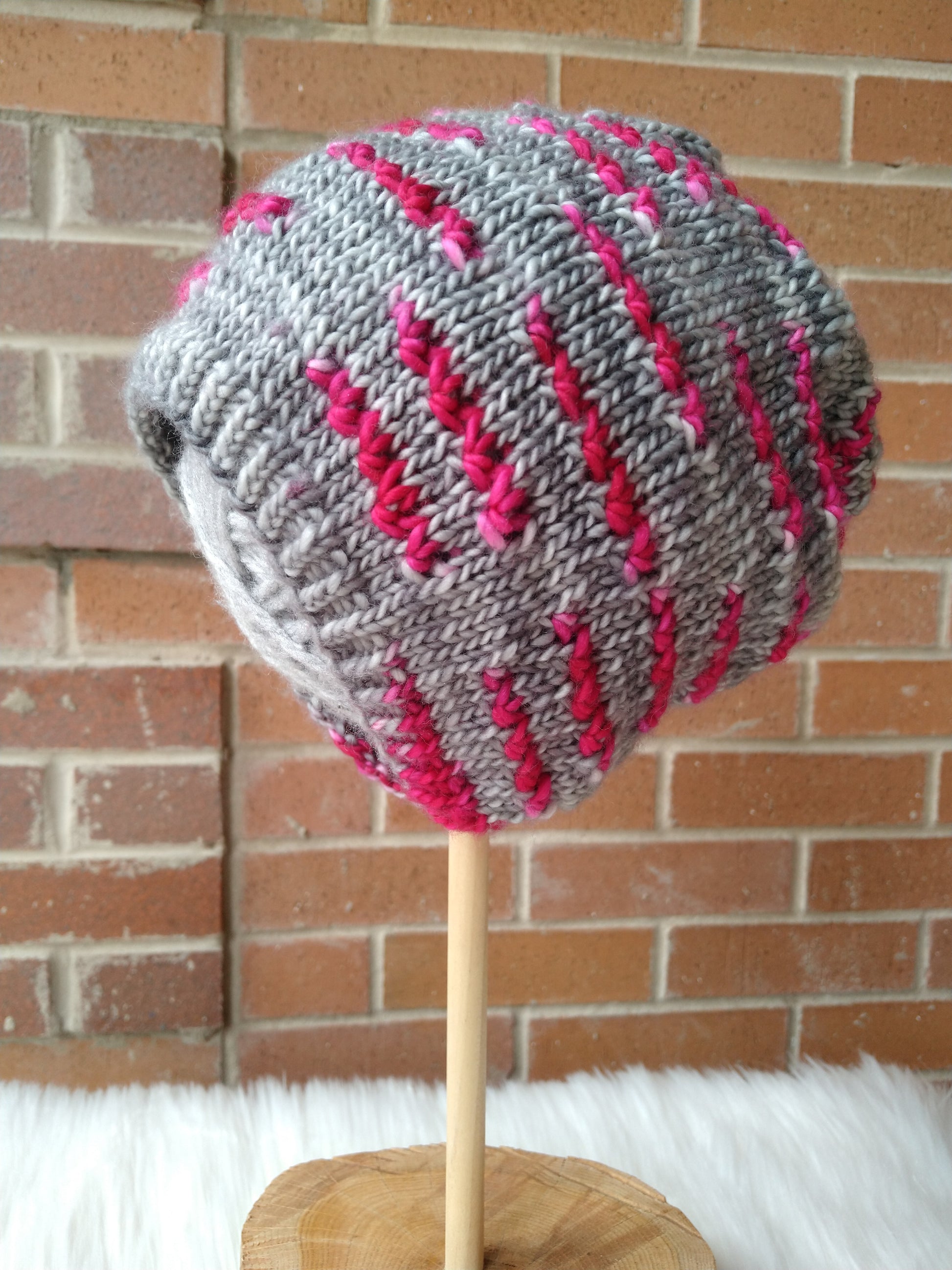 This is a beginner friendly knit that is easily adjustable. The only thing you have to worry about is to make sure the contrasting color doesn’t stack right on top of the previous one, but since there is no hard and fast rule, you can skip every other color change too! Although this is written for worsted weight yarn, this will also work in any other weight using an appropriate needle size! I purposely made my sample a slouchy style and it is SO cute!