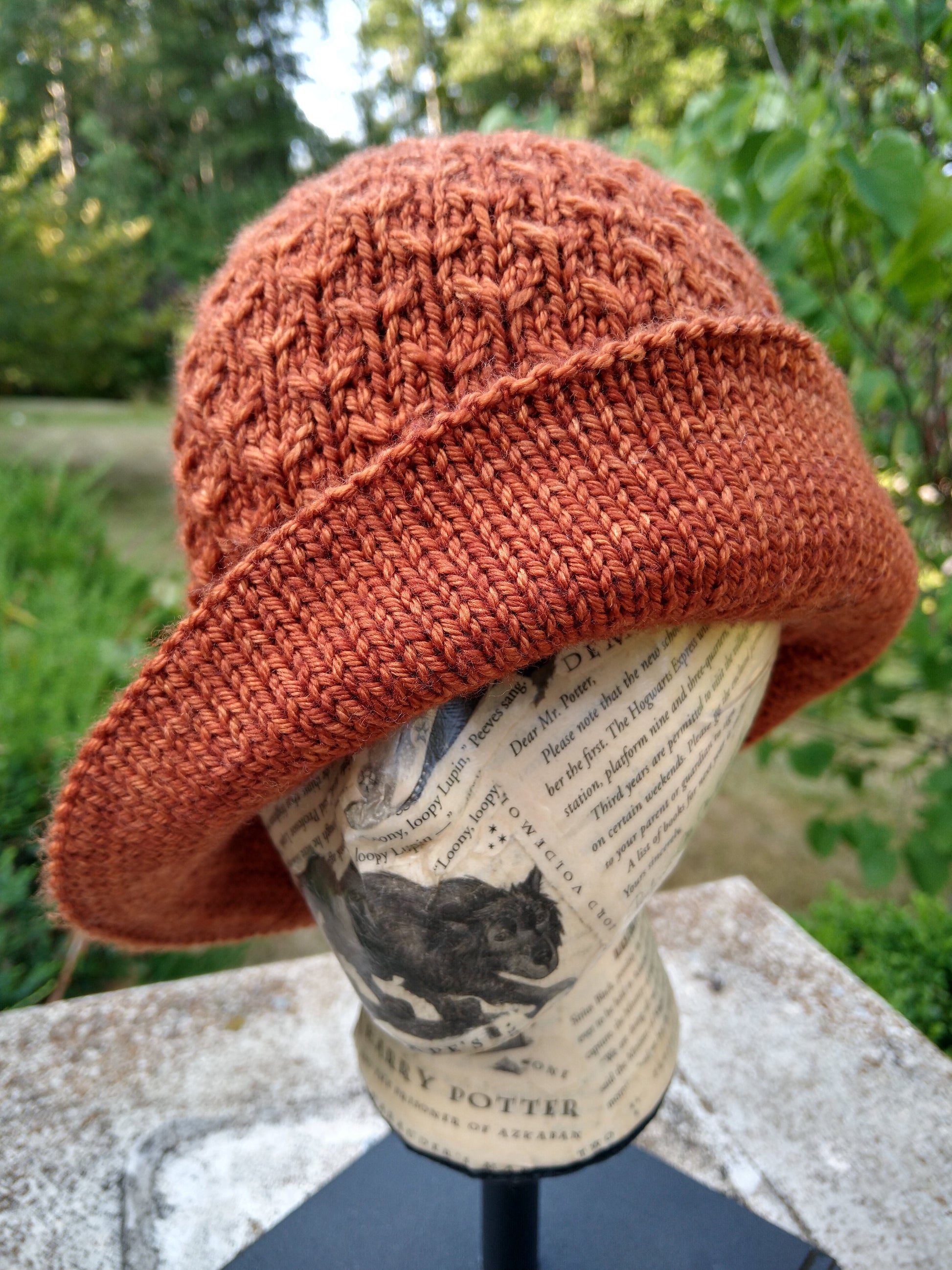Rosewood is an uncommon wand wood. Two known owners of rosewood wands are Fleur Delacour and Eulalie Hicks. Fleur’s school uniform includes a cloche and Eulalie’s fashion period is the 1920s-1930s as depicted in films. How fitting that this is the style that is perfect for showing off the beautiful thorn stitch!