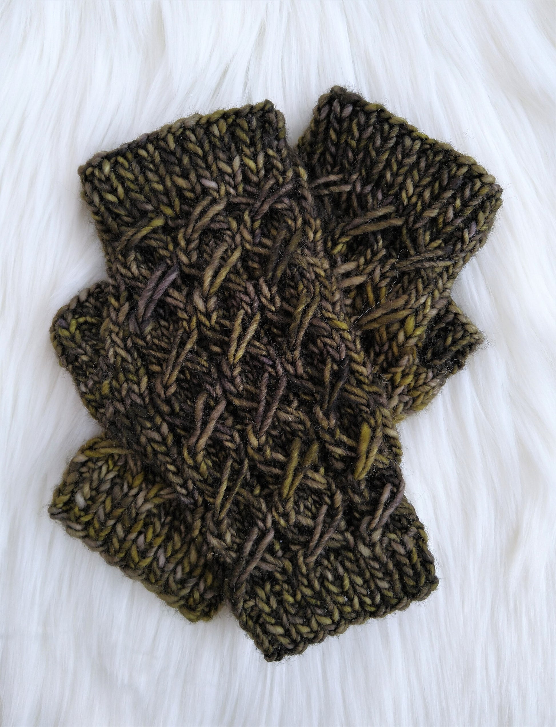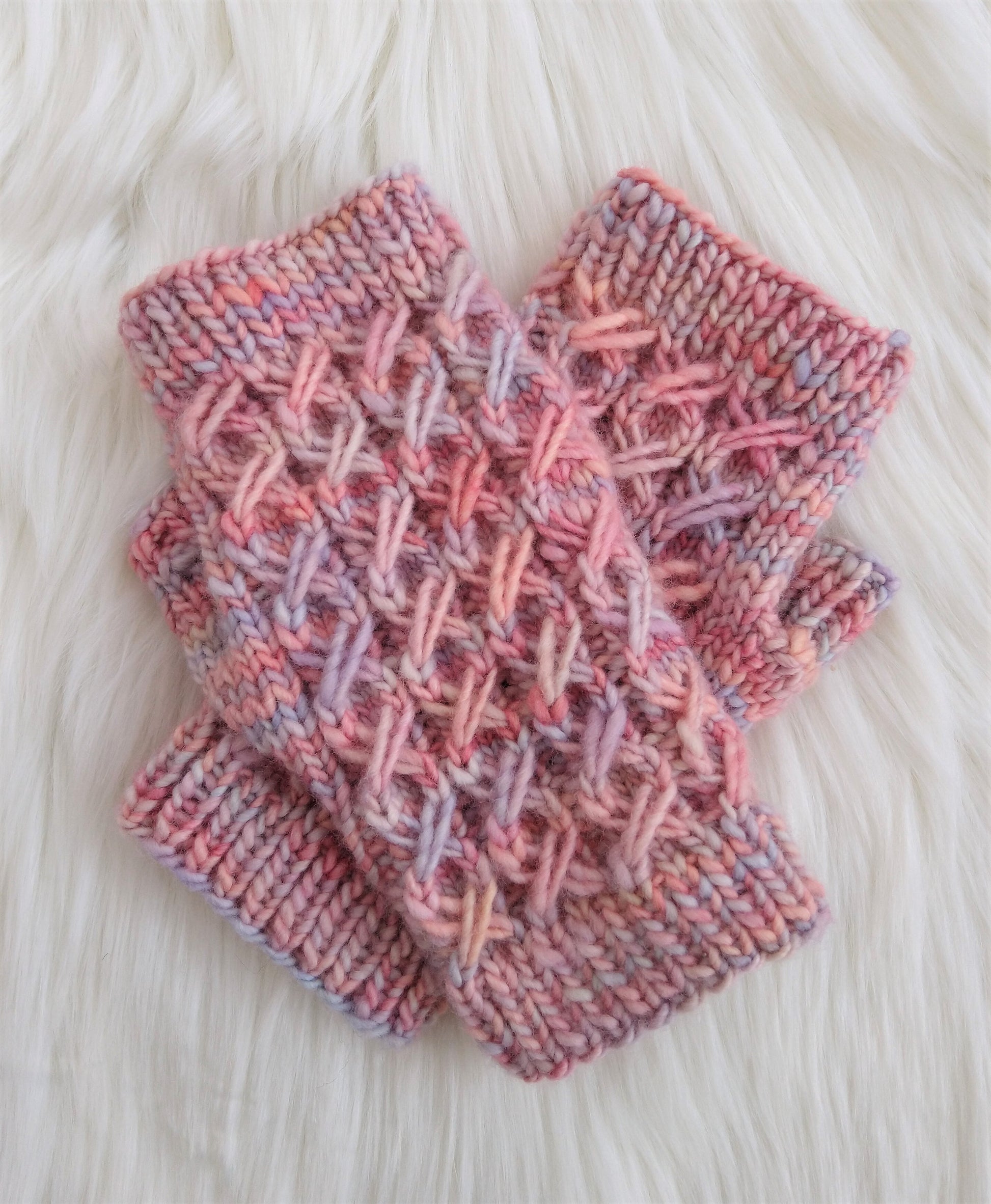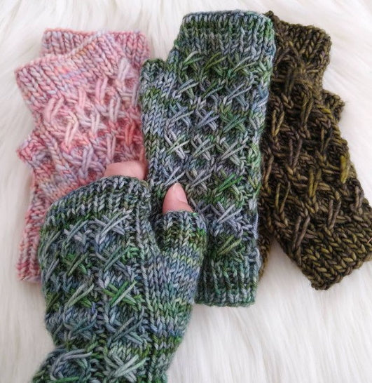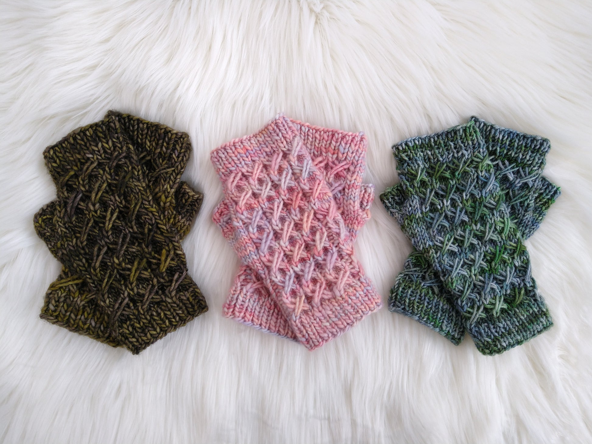 The matching fingerless mitts for the previously released Unbreakable Vow Toque, this one comes in three weights: light bulky, worsted, and DK! Written for an adult sized hand, it can be resized by changing the needle size or adding/ subtracting a few stitches from the pattern.